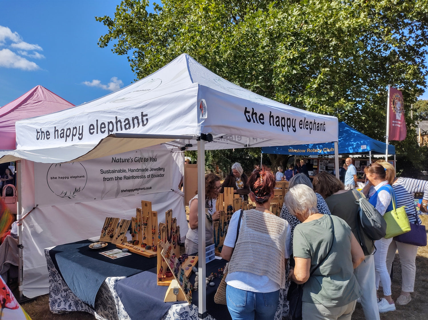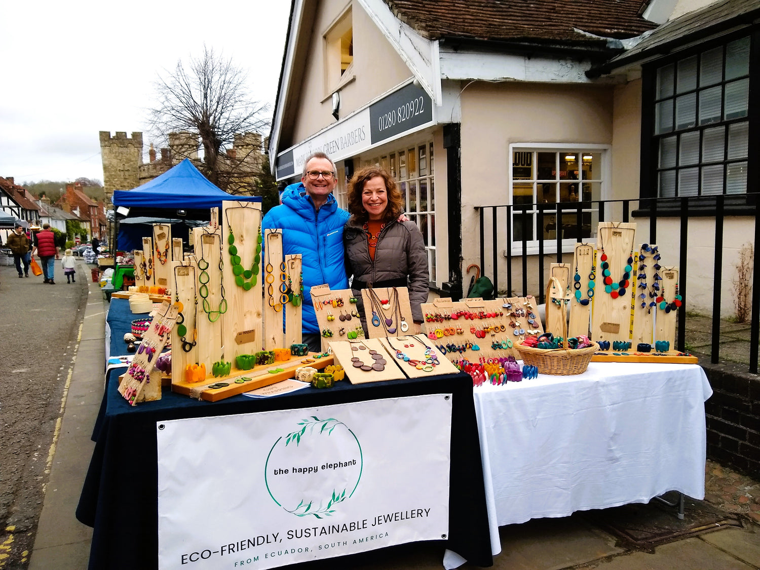 Our first market in Buckingham, England was a humble start! We borrowed tables and braved November weather without a gazebo, earning chuckles from fellow traders. Looking back, it's amusing to see how far we've come. Despite the challenges, we quickly discovered the popularity of tagua jewellery. It was a small beginning, but it marked the start of an incredible journey for The Happy Elephant.